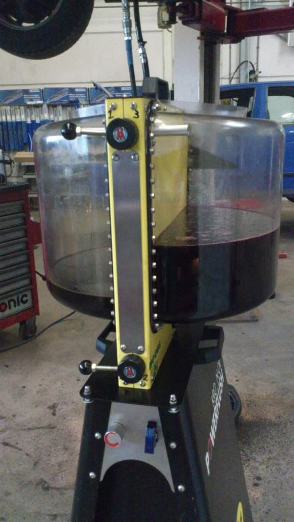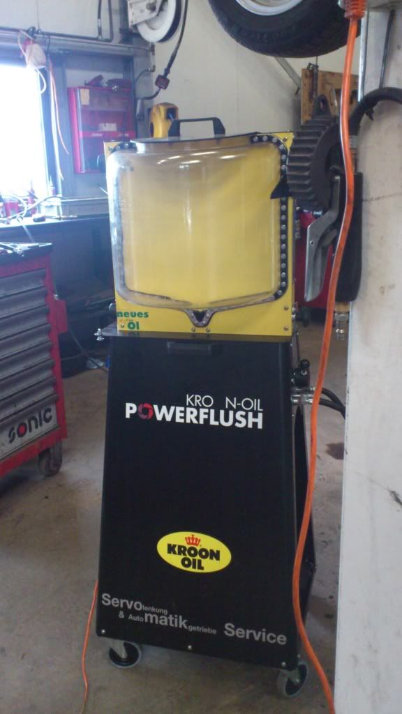 Dan gaat de nieuwe atf er in met een conditioner. Wordt de boel gevuld en oude olie verder afgevloeid.